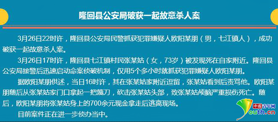 【湖南】13岁留守儿童砍杀7旬老妇 拿走700元终被抓获
