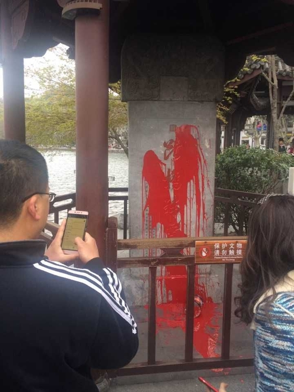 综合《钱江晚报》、浙江在线等报道,据杭州市民爆料,今天下午四时,立在杭州西湖断桥边上的”断桥残雪“石碑遭人泼洒红油漆!记者从警方了解到,泼油漆的是一名男子。目前,这名男子已经被岳庙派出所控制,具体案情还在进一步了解之中。