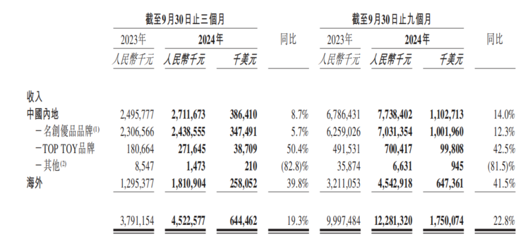 名创优品旗下潮玩品牌TOP TOY在Q3实现了2.7亿元的总营收,同比增长50.4%。前9个月累计收入7.0亿元,同比增长42.5%。
