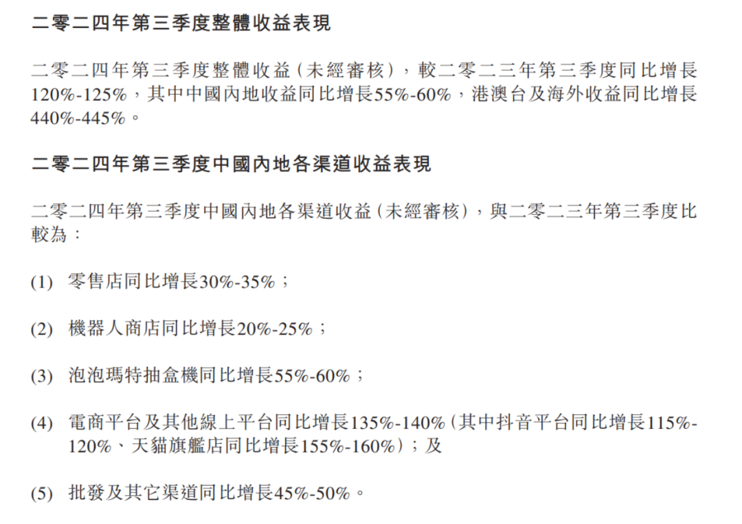 TOP TOY方面,截至2024年9月30日的门店总数已增至234家,9个月净增86家,创造了新的纪录。