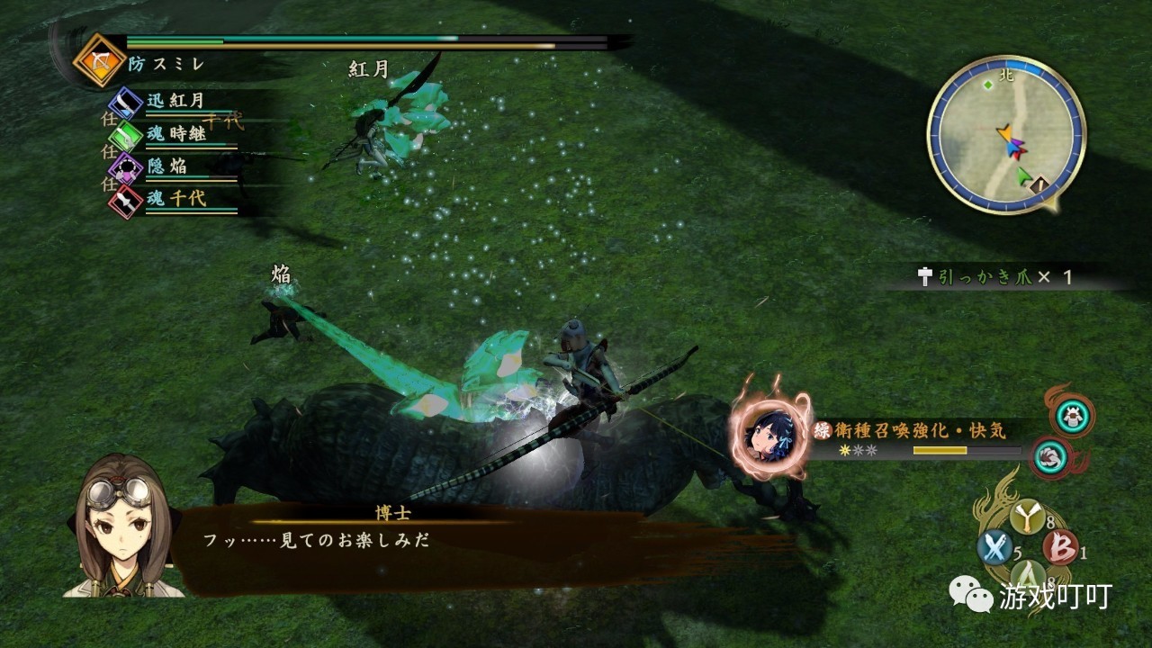 在游戏开始后的一个小时以内,老实说,本人在对小怪的战斗中感觉到无力可施,小鬼攻击手段单一,和伙伴一起攻击时更是群魔乱舞,战斗带来的感觉既不是狩猎,也不是无双,这就让人感觉到十分尴尬了。直到游戏3个小时后,我终于得以在开放地图中驰骋,同时遇到了体型和难度都很大的鬼。血厚、攻击手段多样、攻击力强,此时和伙伴AI一起共同进行讨伐,才让我终于有了一种“狩猎”的感觉。