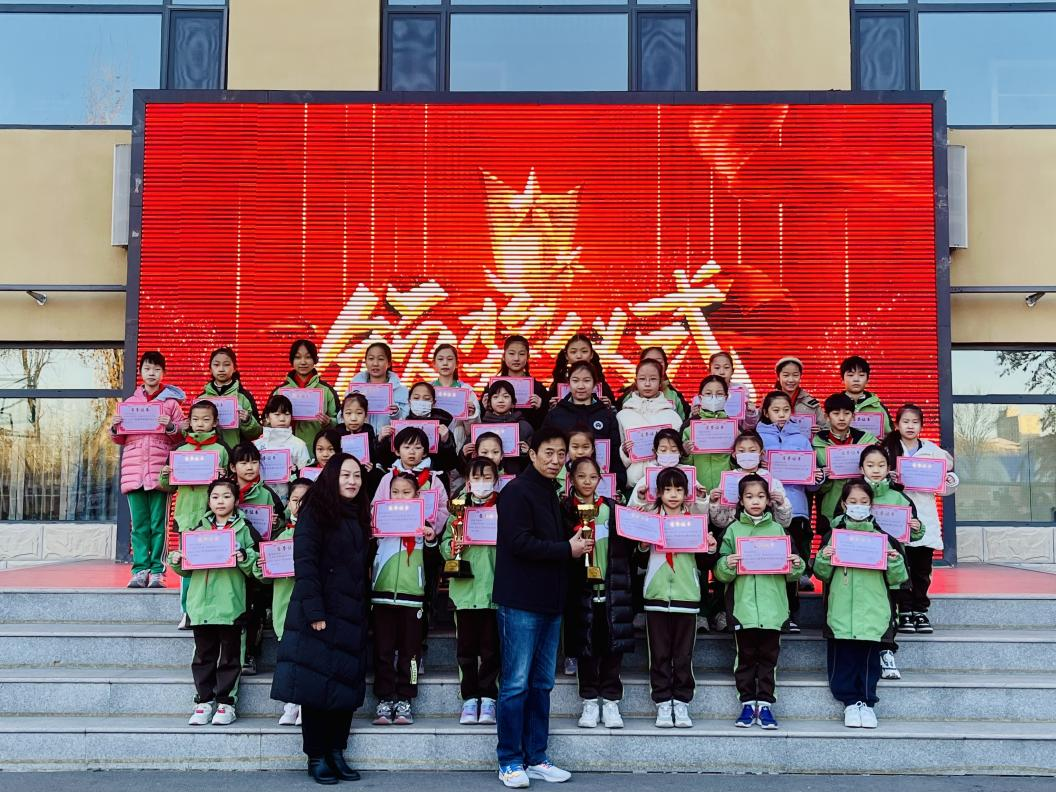 启动仪式上,西苑小学刘君英校长为刚刚在石家庄市健美操比赛获得一等奖的啦啦操队员颁发奖杯,同时授予她们“西苑体育榜样”称号,并大力赞誉她们团结协作、奋力拼搏的精神。