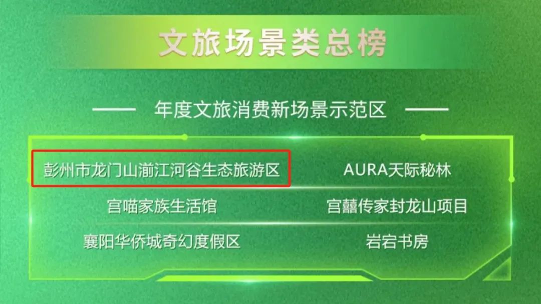 近日,2024中国文旅大消费年度盛典暨第八届“龙雀奖”颁奖典礼在浙江横店影视城举办。龙门山湔江河谷生态旅游区荣获“年度文旅消费新场景示范区”。