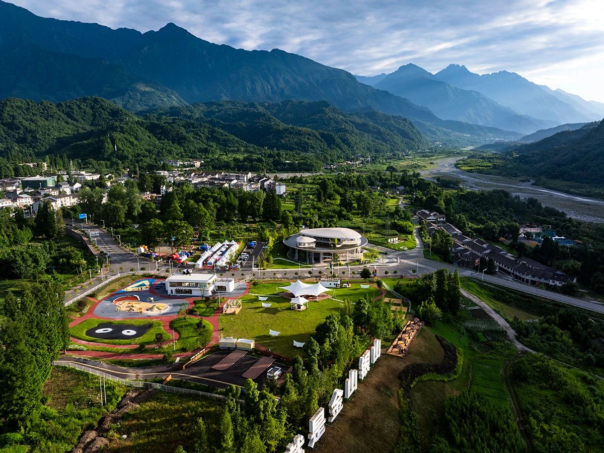 熊猫运动公园位于龙门山镇小鱼洞社区,这里以“雪山熊猫”为主题,集中展示了与大熊猫有关的文化以及彭州的山水元素。