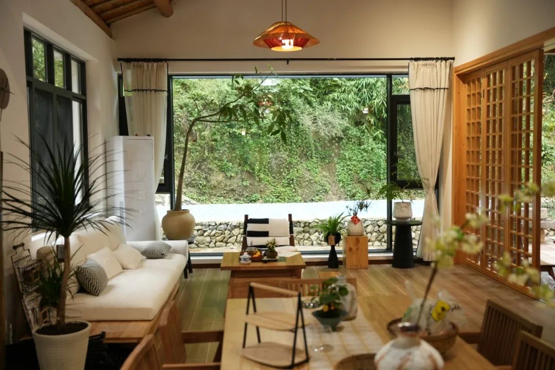 这里的每一个角落都充满了家的气息,窗外的绿色植被和清溪让人心情舒畅。