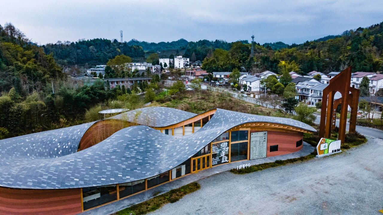 这里有地下酒吧和室外景观场地,从有形到无形的屋檐转变,寓意着乡村共同体从实体到精神的升华。