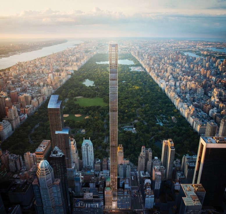 在寸土寸金的曼哈顿,已经形成了这样一种建楼趋势——越细越好。就拿The Big Bend预计坐落的目的地,被称为亿万富翁之路(Billionaire’s Row)的57街来说,宽高比为1:23.5的111 West 57th Street大楼即将在2018年于此竣工,换言之,地基仅有18.5米宽的大楼,高度却达到了435米。这是目前比较极端的“细楼”例子,把时间往前推,2008年完工的Sky House是最早出现的“细长塔型”建筑,2015年建成的宽高比为1:15的432 Park Avenue大厦已经远超过结构工程师通常能接受的摩天大楼最小宽高比例——1:10或1:12。