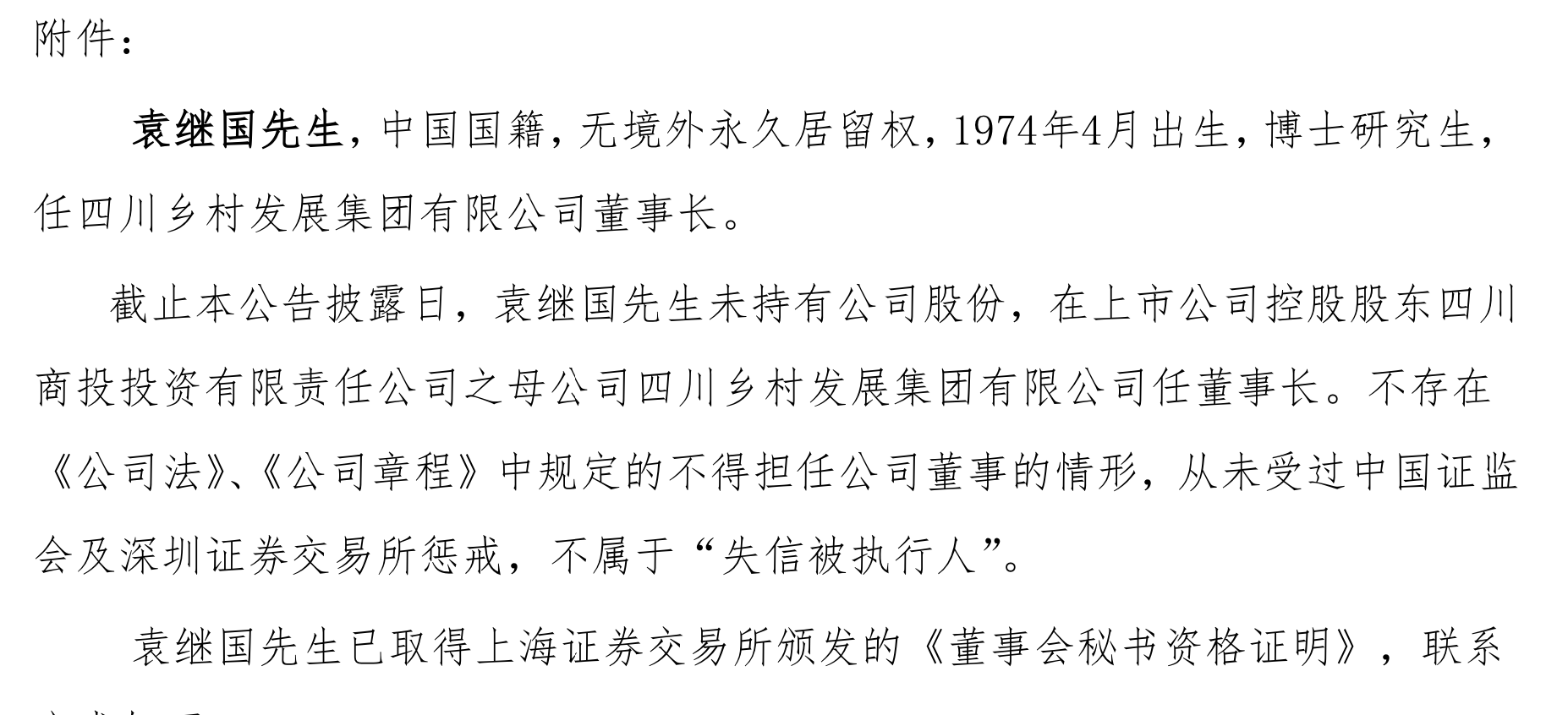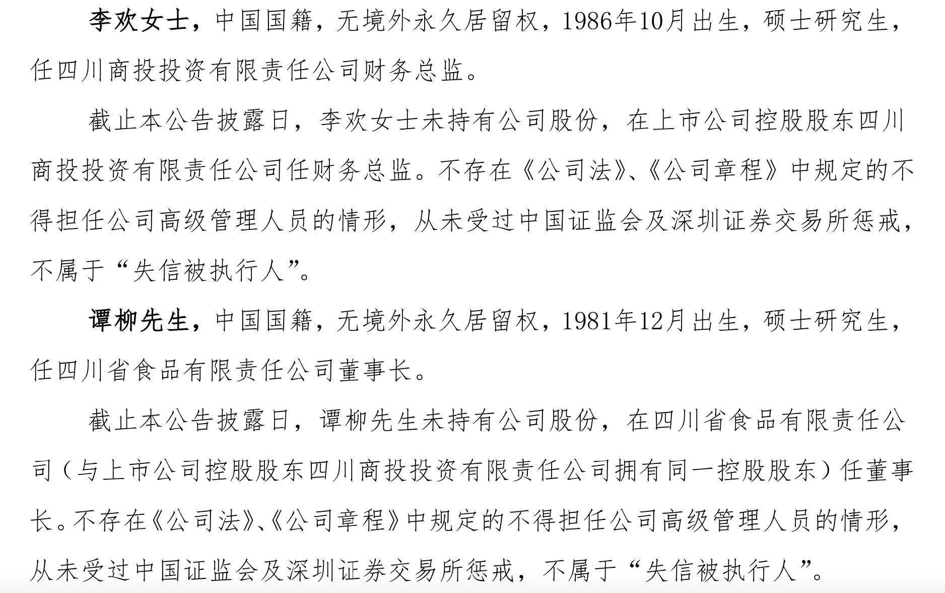 “这是正常的变动”,接近公司的人士表示,根据当时股权转让协议,川商投资控股公司有一定的董事,高管,监事席位,所以公司这边就必须有人辞任,才能有空位,所以这是很正常的。