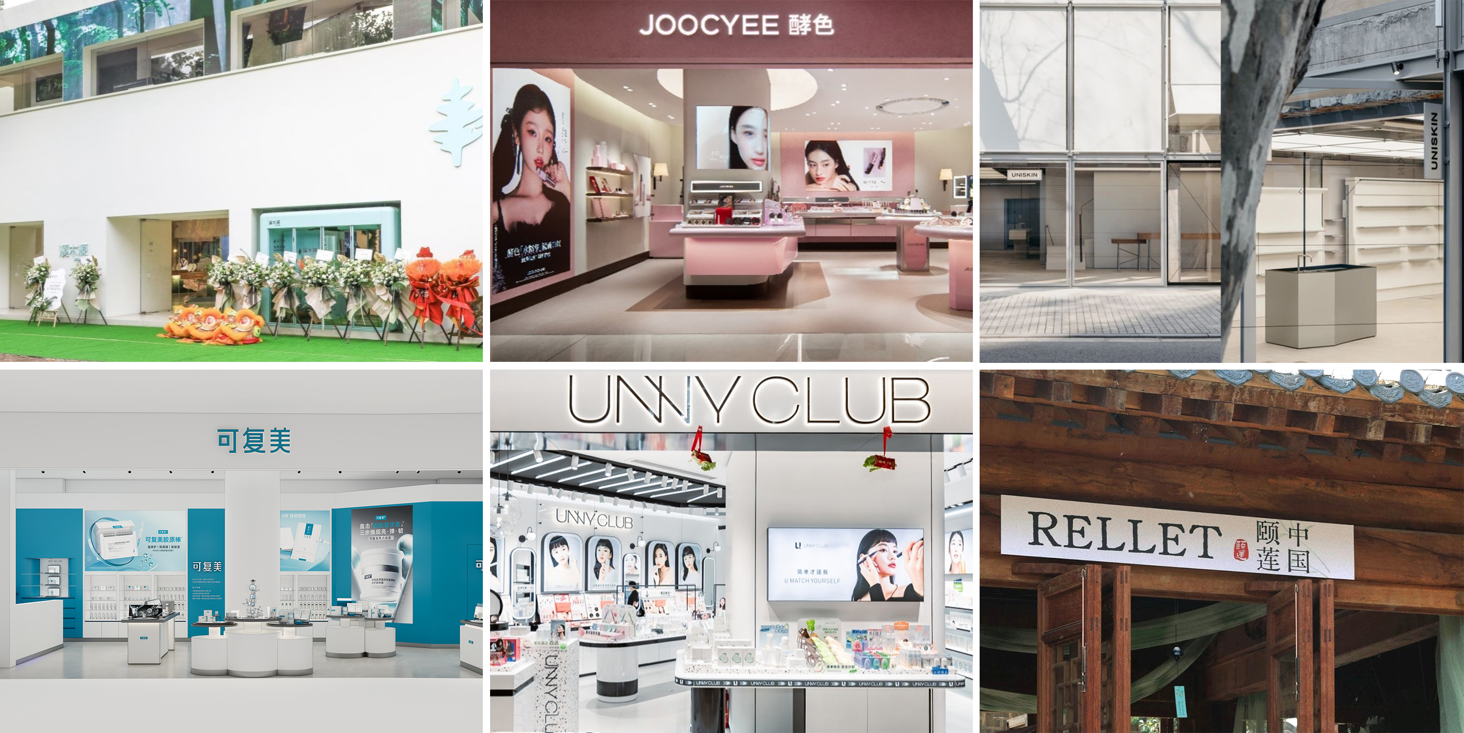 在具体选址上,酵色、悠宜选择了客流量大、消费能力强的长沙国金街、重庆时代天街、杭州龙湖金沙天街;颐莲和敷尔佳则选择了有着同样特点的旅游街区济南明水古城、交通枢纽哈尔滨机场。