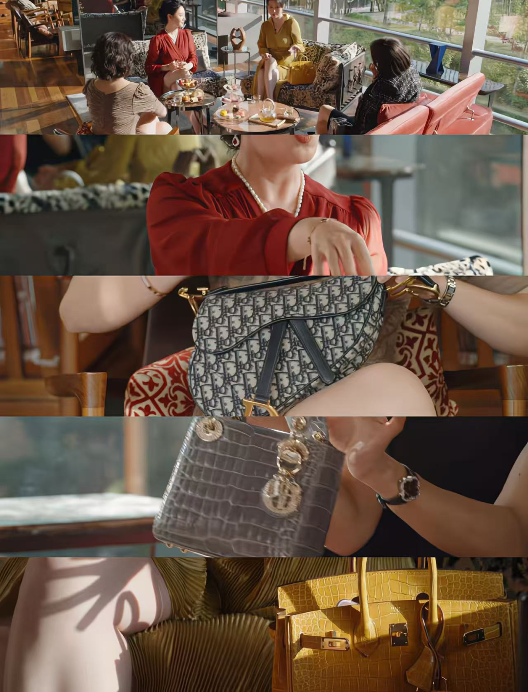 电视剧《装腔启示录》中有一名场面——四位阔太相聚一起下午茶,展现了一场关于梵克雅宝四叶草手链、Dior马鞍包、Dior戴妃包、爱马仕之间的较量。