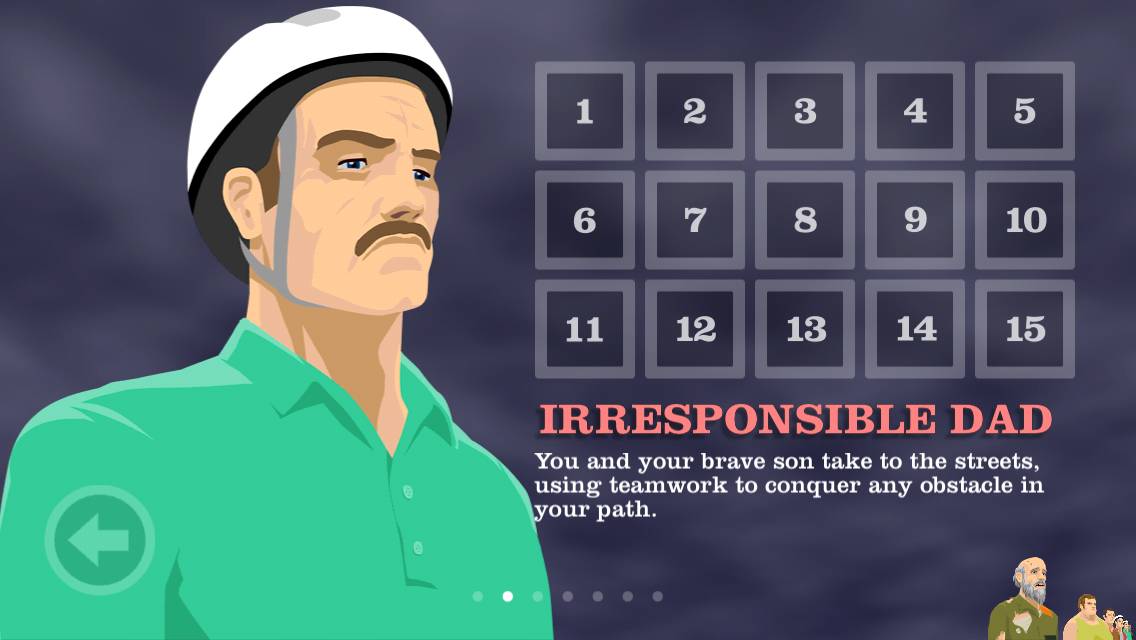 在这个游戏中,你的任务很简单,操纵骑着滑板车的上班族大叔、飚着自行车不负责任的爸比或者是身残志坚的轮椅大爷,一路过关,最后到达终点。(买菜大妈以及吵架情侣人物app暂时还没有开通,听说windows可以下载全角色解锁的版本,还有自制地图等功能。)