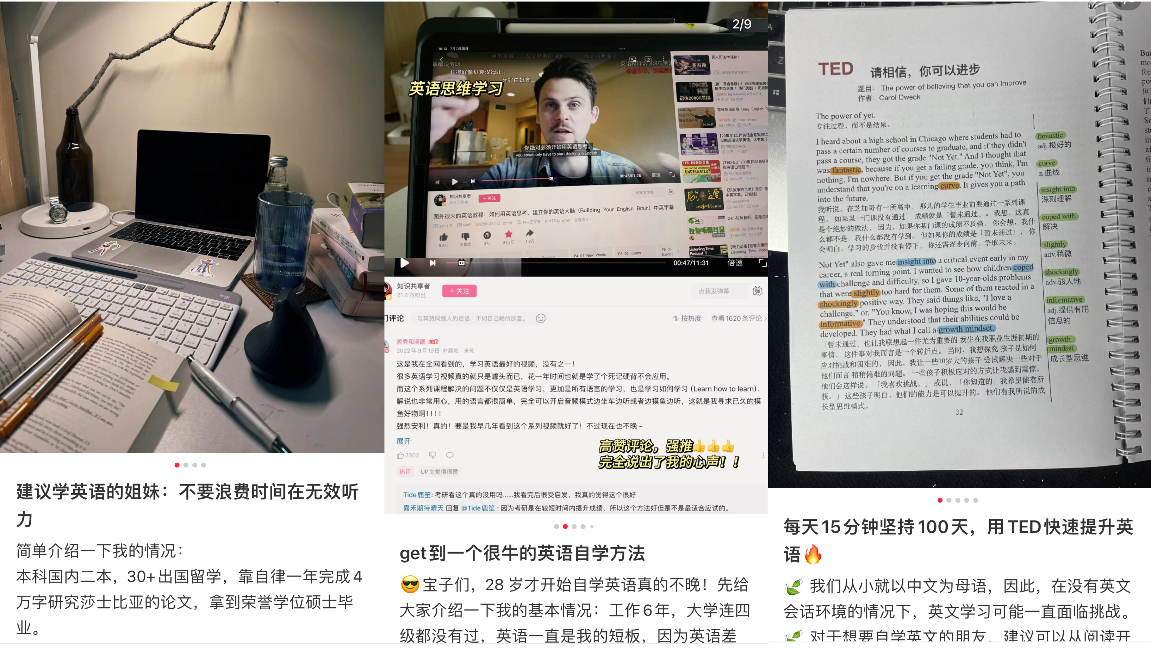 在小红书上研究各式各样的学习方法,例如“首评momo法”“尚雯婕学习法”“新概念学习法”等,吴晓发现,算法其实是非常容易反控的,只要连续点击或搜索几个同一主题的内容,那么手里的软件就会变成一本私人订制的工具书。