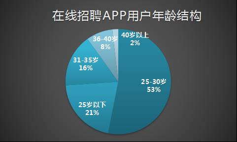 在线招聘APP用户年龄结构方面,30岁以下的用户占比74%,这部分人群多为初入职场的新人。在职场生涯最初几年,缺乏稳定、长远的职业发展规划,跳槽比例较高,因此这部分人群便成为在线招聘APP的主要用户群体。30岁以上的职场人士多为中高管阶层,职业规划明确、稳定,并且这部分人群更换工作大多为职业猎头推荐,因此这部分人群一般不会使用在线招聘APP。