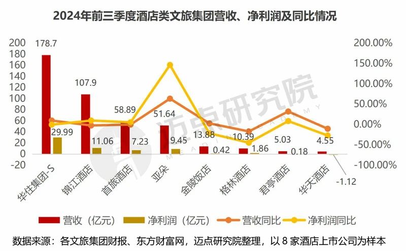 聚焦以酒店为主营业务的文旅上市企业,整体情况与景区乐园类企业相似,总体盈利、多数企业增速放缓或出现一定下滑。8家酒店上市企业中,除华天酒店外,其余均实现盈利,且华住集团-S的净利润最高,约为30亿元,处于领先地位。同比增速方面,亚朵集团净利润同比增长超八成,增速位列各酒店集团首位,其酒店与零售业务双驱动,延续高质增长态势。