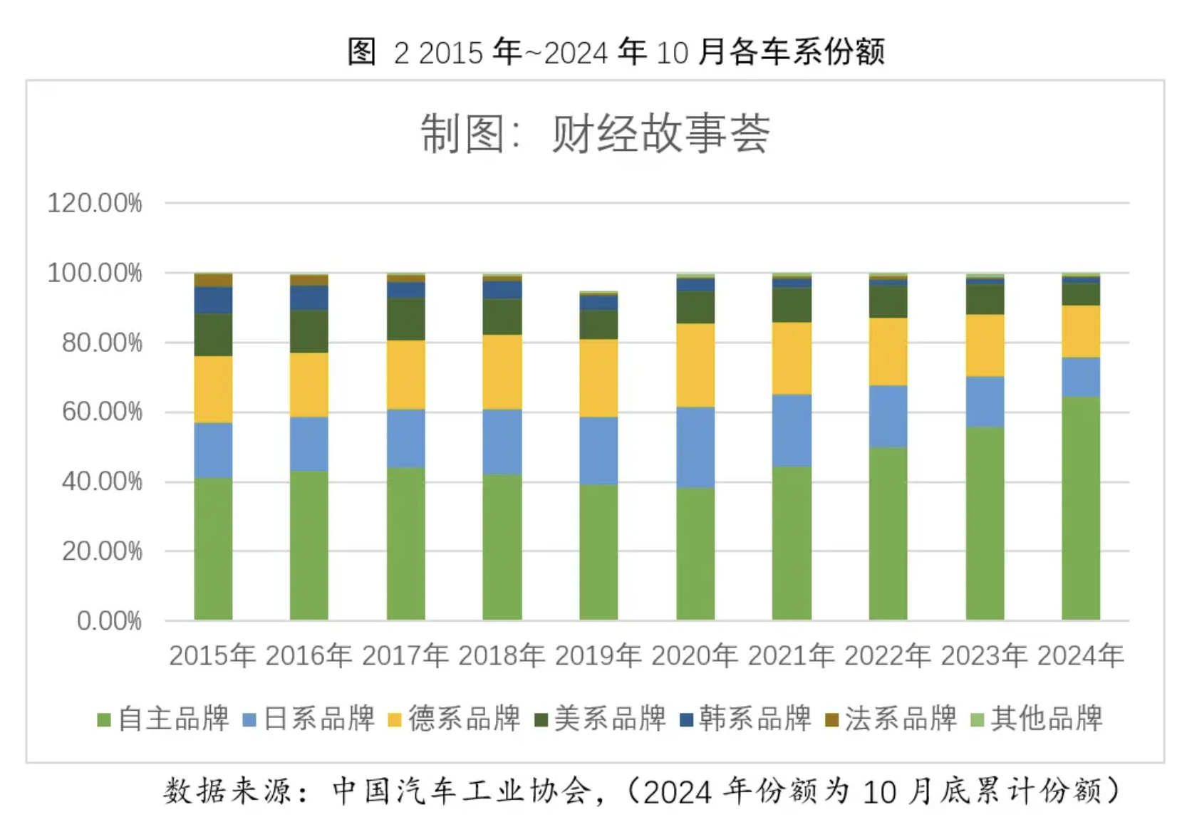 自主品牌市占率近4年以每年一个台阶的跳跃式提升,从0到40%,用了30多年,从重回40%到占有三分之二,只用到3年多时间。