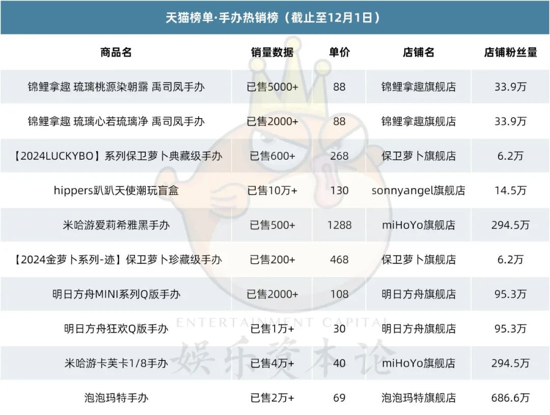 再来看手办热销榜。