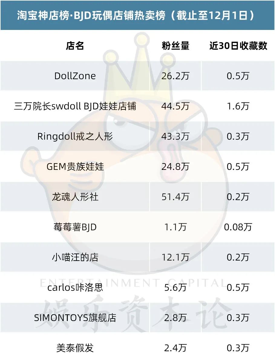 美泰假发作为一家专营BJD假发的店铺,30天内购买人数增速超5%,成为榜单中的一匹黑马。