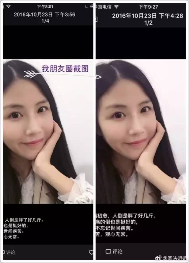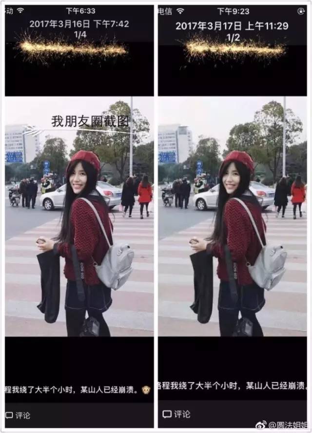 她还在微博上公布了朋友圈发布时间,证明照片被盗用。