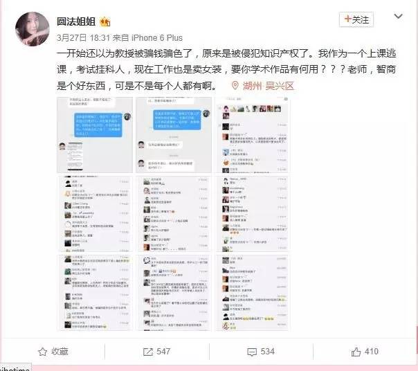 吃瓜群众操碎了心,但是,美女微商却爆料说,教授并没有被骗钱偏色,而是被侵犯知识产权了。