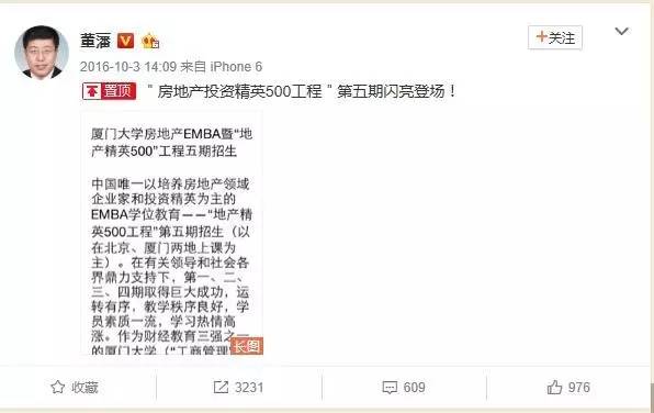因为近年来,房地产火热,董藩教授的EMBA课程很火,也有不少论坛请教授就房地产形势发表演讲。