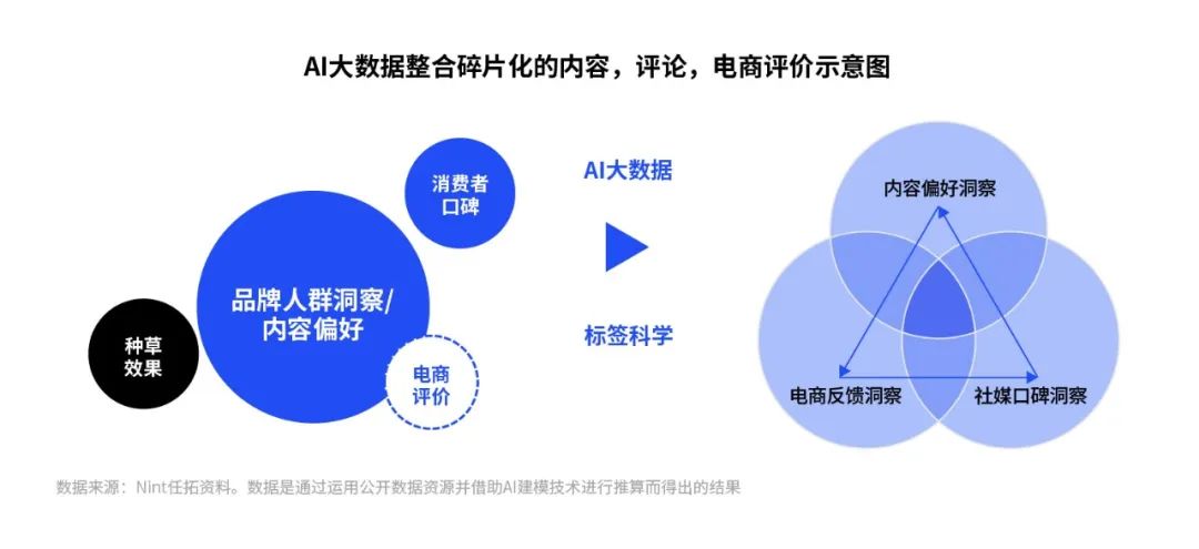 品牌经营的第二层视野盲区,传统统计学的人群标签无法全面而系统地刻画“亿人亿面”的多样化消费需求。如何通过精准的“小标签”捕捉到消费者需求的“大缺口”便成为品牌超车的关键。《报告》提出,通过利用AI大数据能够将碎片化的内容、评论拉通,形成消费者内容偏好、电商反馈洞察和社媒口碑洞察,挖掘未被满足的需求。这样的标签体系也是Nint任拓的核心能力之一。