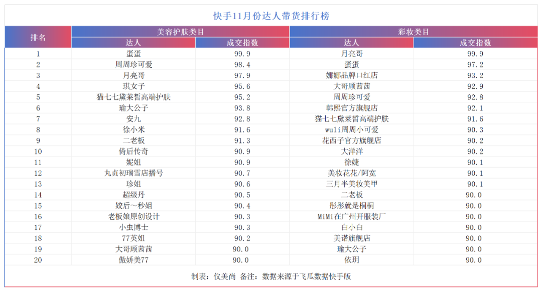 在各大电商平台11月的美妆战绩中,达人是一股不可忽视的力量。