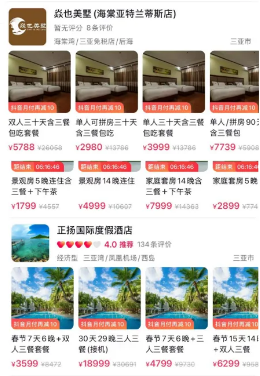 在抖音上随便一搜,海南各地高星酒店的“过冬”套餐相当多,且价格相当优惠。