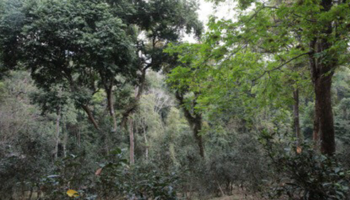 原始森林给了茶树生长所必须的一切要素,阳光、清泉,浩瀚物种繁衍生息而遗留下的丰饶土地,山里和原始森林里的土壤也不像老街附近的茶地偏黄色,而是红棕色,湿润且落叶非常多,这就供给了土壤足够的养分,加上这里天朗气清,没有什么污染,如此优越的自然条件真是天赐,好茶就成为了自然。