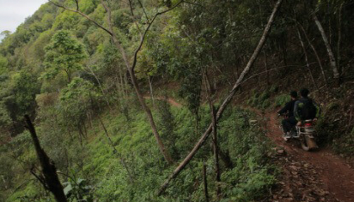 ▲ 去弯弓的路,左边是悬崖或者万丈深渊,右边是原始森林,路只能走摩托,惊心动魄