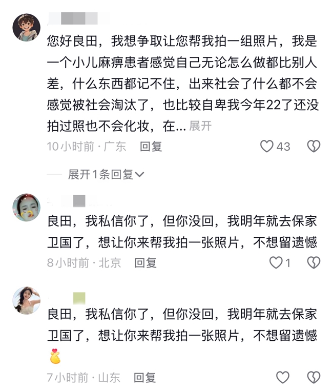 评论区里想请良田拍照的网友
