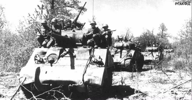 ▲1944年5月第五近卫坦克军的一队M4A2坦克