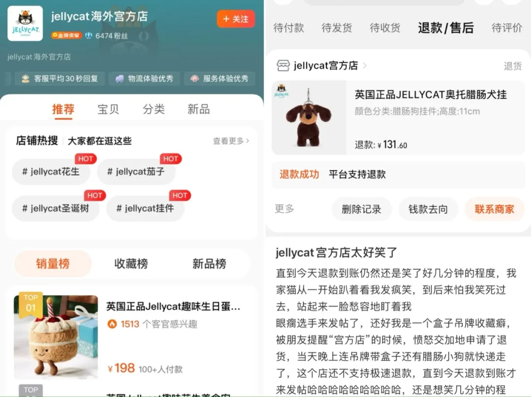 jellycat的“宫方店”骗到不少消费者