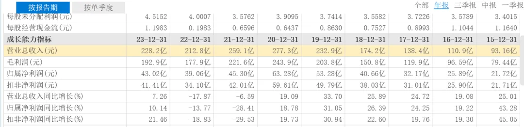 效果也很明显,2023年,恒瑞医药营收达到228.2亿元,同比增长7.26%,净利润43.02亿元,同比增长10.14%,结束了2021年~2022年营收、净利润连续下降的趋势。