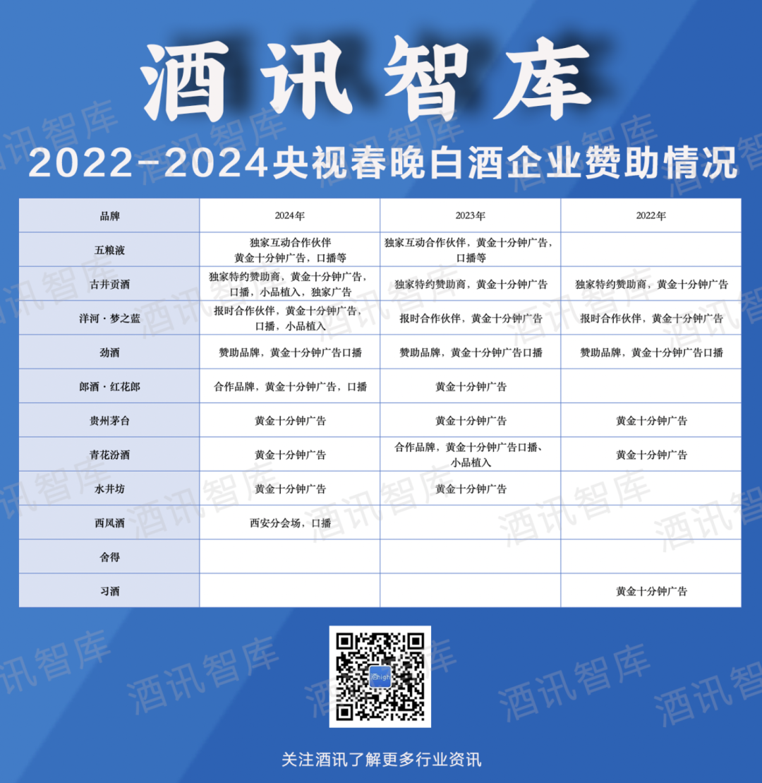 有了古井贡酒、红花郎的打样,让不少人对接下来的春节营销,尤其是2025年春晚营销有了更高的期待。要知道,2024年春晚,就有包括茅台、五粮液、洋河、郎酒、古井贡酒、水井坊、劲酒、西凤酒、汾酒9个top级白酒品牌入驻春晚,展开了包括独家互动合作、黄金十分钟广告、口播、小品植入等在内的多种形式合作,在品牌参与度、合作形式丰富程度上都称得上是历年之最。