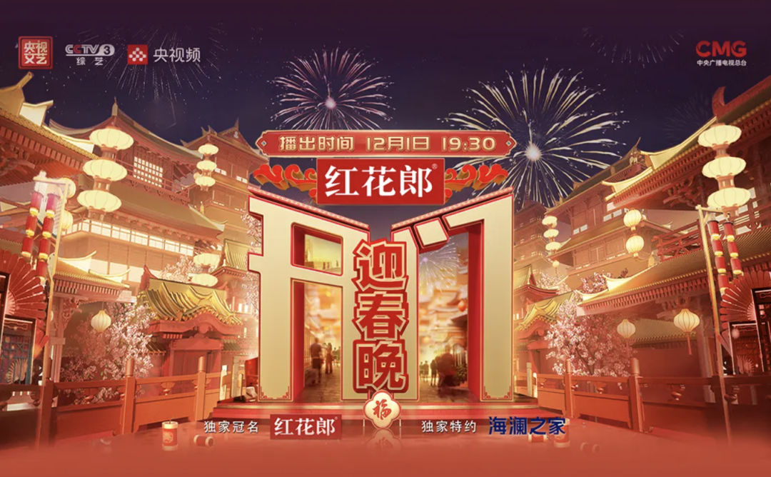 同样和春晚关系密切的郎酒“红花郎”也发来贺电。和古井贡酒一样,“红花郎×春晚”这对“荧幕CP”再度确认关系,红花郎冠名定制的综艺《开门迎春晚》在12月1日开播,率先拉开2025蛇年春节序幕,也巧妙地迎上了春节申遗的流量。