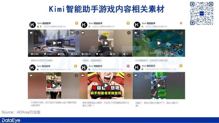 DataEye研究院发现,向来以激进投放策略著称的Kimi智能助手,近期悄悄开始尝试用游戏内容进行买量投放,并取得了一定的效果。