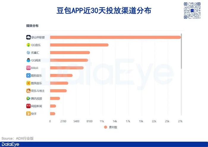 但在近30天,豆包投放渠道中穿山甲联盟占比降低至49.86%,QQ音乐、优量汇、QQ阅读等腾讯系渠道紧随其后,占比均大幅提升,分别达到了22.22%、15.15%和14.42%。