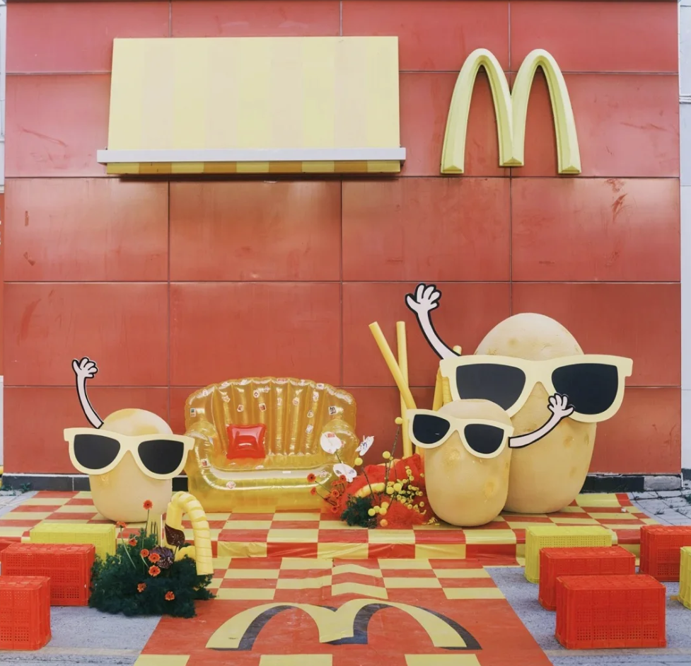 还有很多“麦当劳”细节,比如整场婚礼的配色是“红+黄”,让人一看就知道是麦当劳。