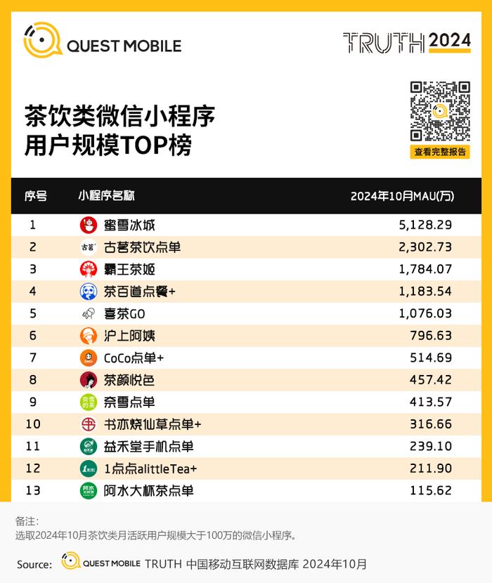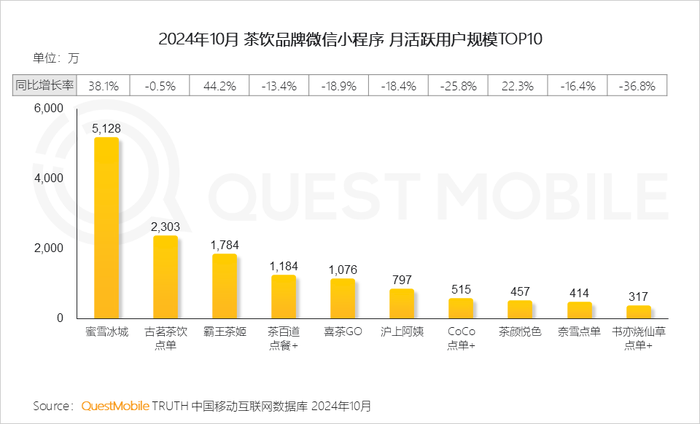2、茶饮类微信小程序用户规模TOP榜