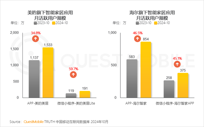3、典型家电品牌美的、海尔积极推动智能家居技术的发展,覆盖更广泛的智能场景,为用户提供更加便捷、智能的生活体验,带动APP和小程序端流量增长
