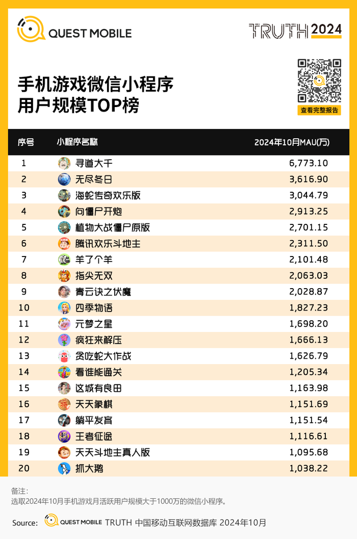 3、手机游戏微信小程序用户规模TOP榜