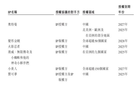 为了减轻对任何单一IP的依赖,布鲁可也一直积极扩展自身的IP矩阵。截至最后实际可行日期,布鲁可的矩阵中拥有约50个授权IP,目前正就超过25个IP进行IP授权安排的磋商,此外还一直致力于提供自有IP下的产品。