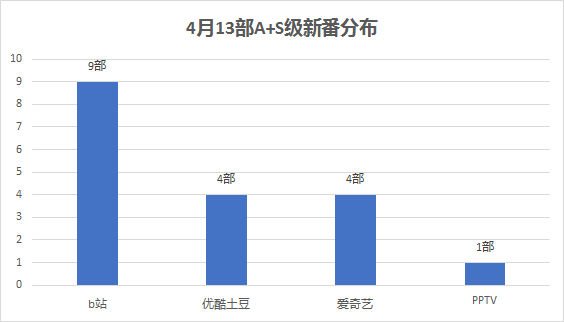 其中,b站正版引入的热门新番数量以9部的优势排名第一,优酷土豆、爱奇艺则以4部热门新番的数量紧随其后,而PPTV则以1部热门新番排名最后。至于说在这13部新番动画中会不会出现“年度霸权”番,我们现在也只能拭目以待了。
