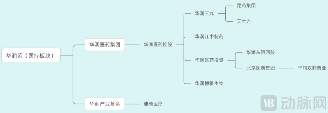 华润系作为年入超2000亿元的医药界巨无霸,旗下拥有10家上市公司及超730家非上市企业。其上市企业包括华润三九、江中药业、东阿阿胶、昆药集团、华润双鹤、博雅生物、华润医药、华润医疗、迪瑞医疗、天士力等。