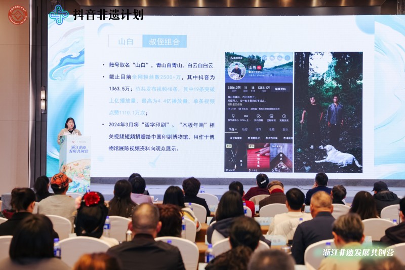 12月5日,“浙江非遗发展共创营”在杭州举行。该活动由浙江省文化广电和旅游厅指导,抖音公益、杭州市拱墅区文化和广电旅游体育局主办。@山白、@乡愁 等23组抖音优质创作者,“龙泉宝剑”、“木活字印刷”等浙江省特色非遗技艺的50余位传承人受邀到场。活动中,抖音创作者与非遗传承人交流非遗传播经验,并通过研讨共创的形式达成了19项关于浙江非遗题材的短视频拍摄合作。