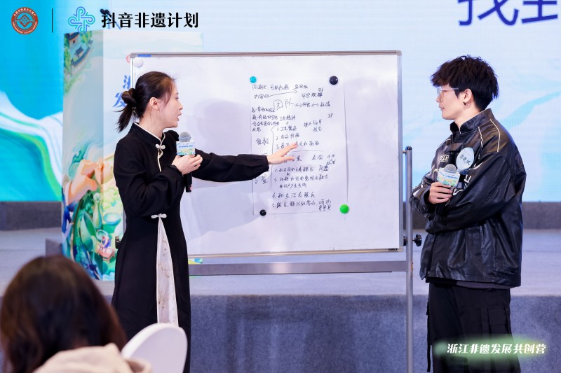 分享授课外,共创营还设有研讨共创环节。23组创作者与20个浙江省非遗项目的传承人,围绕不同非遗项目的传播需求,进行了方案讨论。最终,现场达成19项浙江省非遗短视频的内容合作,其产生的每条作品都将得到抖音公益提供的专属流量激励。
