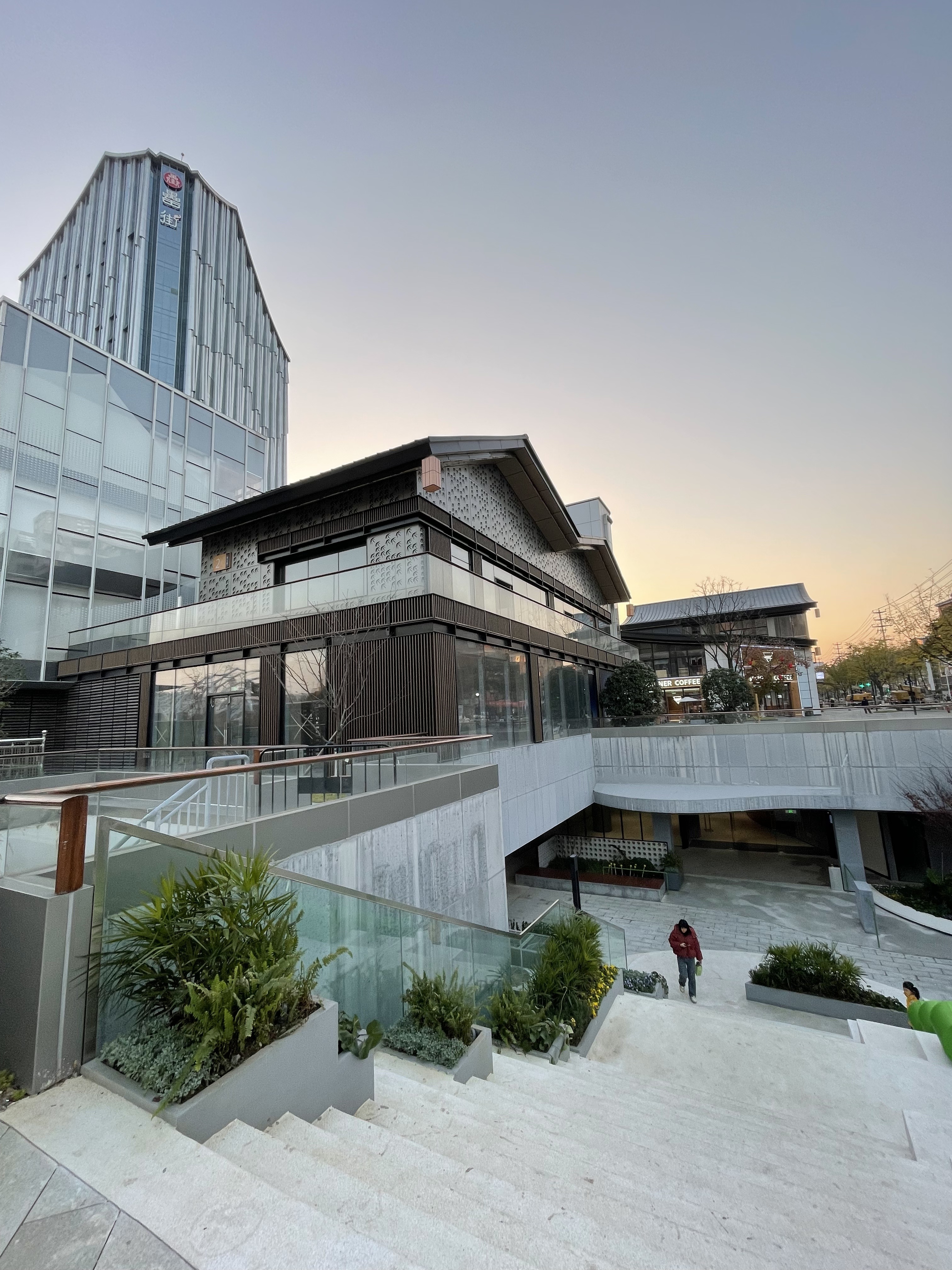 整体商业逛感,开放式街区+退台式地下空间,消费者一边置身古色古香,另一边在现代建筑的大楼、车水马龙和人声鼎沸中交错,刻下时代穿梭感。