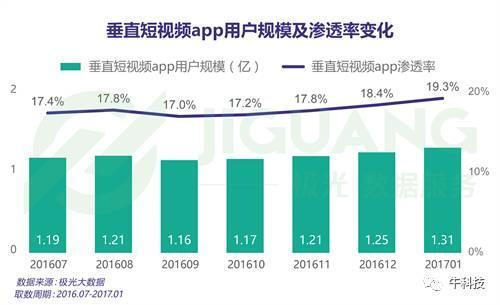 追述到2016年,短视频市场迎来爆发期。今日头条、秒拍母公司一下科技、百度等纷纷宣布将投入10+亿元来扶持短视频内容;短视频自媒体Papi酱、关爱八卦成长协会、二更视频等等均获得融资;极光大数据显示,截至2017年1月最后一周,垂直短视频app渗透率为19.3%,用户规模达1.31亿人。这意味着,平均每五个移动网民中就有接近一个是短视频app的用户。可以说,无论是资本还是用户的热衷度,可能都说明短视频正处于“风口”上。