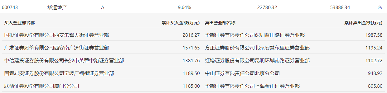 华远地产今日涨停,龙虎榜数据显示,上榜营业部席位全天成交1.42亿元,占当日总成交金额比例为26.32%。其中,买入金额为8144.19万元,卖出金额为6040.25万元,合计净买入2103.93万元。