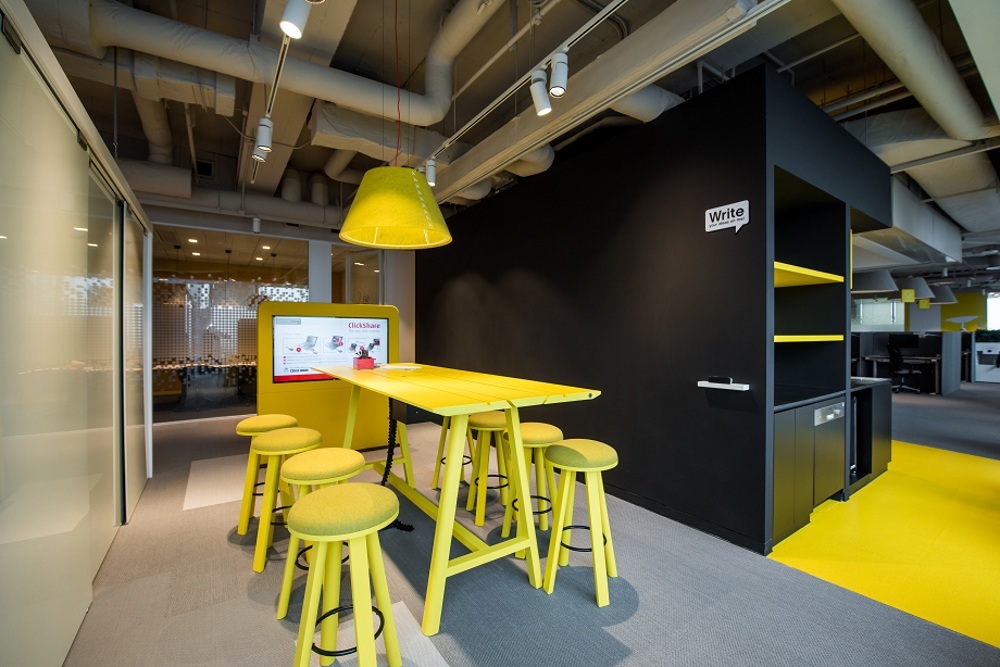 乐高在办公室设计时使用了很多吸音材料,避免不同区域相互干扰。乐高还为这种新的办公方式开发了一个手机应用,可以通过手机来预订位置或寻找同事。